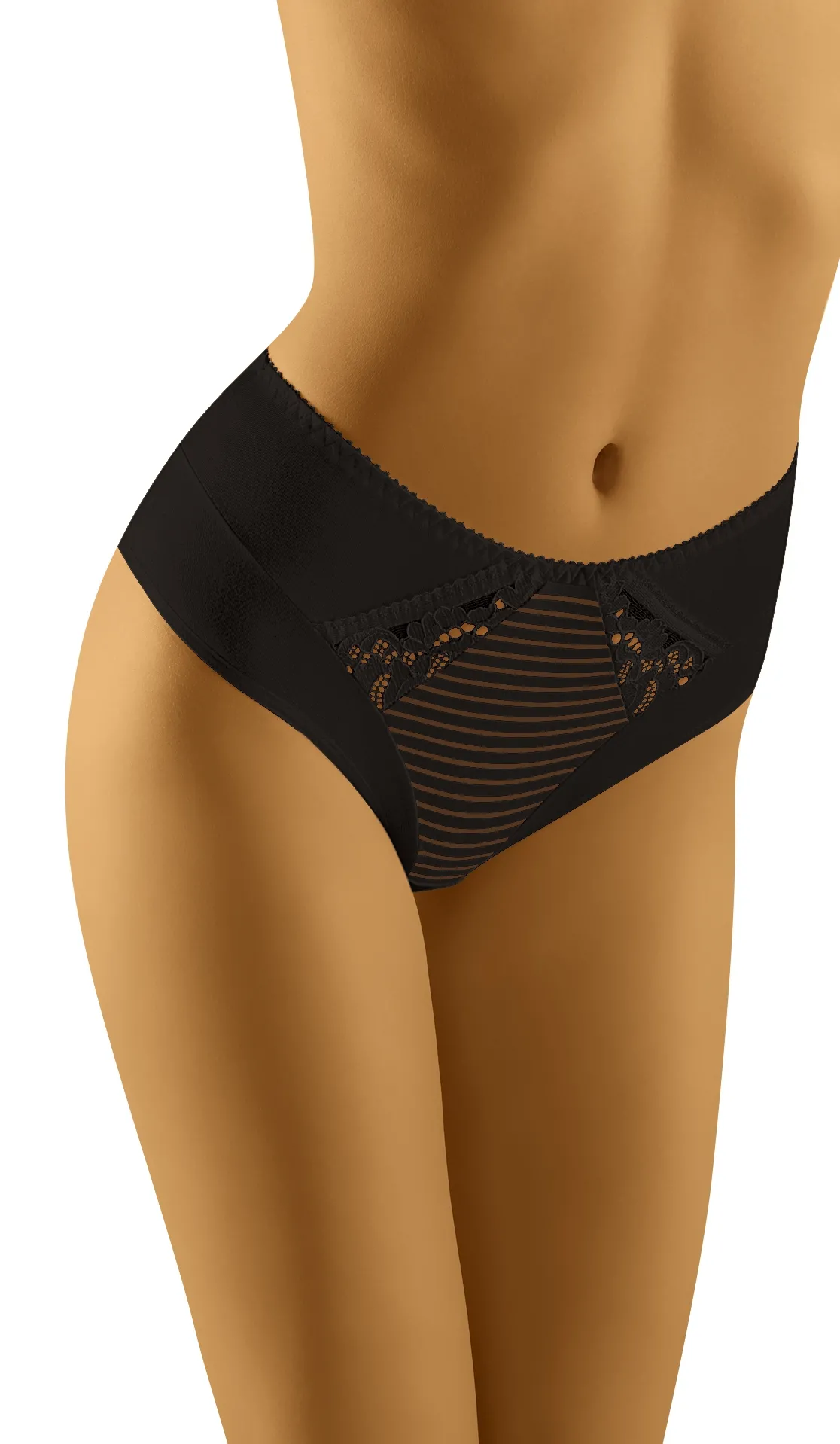 Klasyczny krój majteczek Kobieca stylistyka Koronkowe zdobienia Majteczki o komfortowym kroju Majteczki typu figi Miękka i przewiewna tkanina Pakowany w pudełko Produkt polski Wewnątrz bawełniana wkładka Wysoka jakość Zdobienia biżuteryjne Bawełna: 5% Elastan: 4% Poliamid: 91%