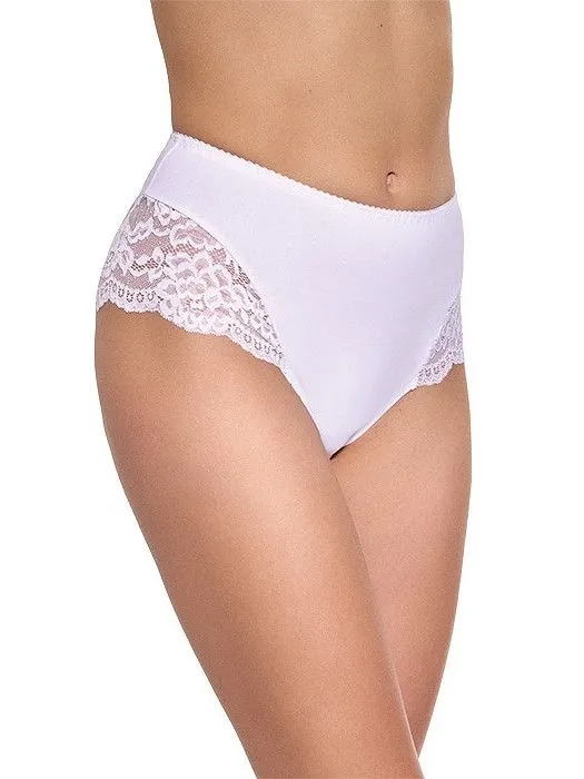 Bielizna typu basic Klasyczny krój majteczek Koronkowe zdobienia Miękka i przewiewna tkanina Model dostępny w wielu kolorach lub wzorach Ozdobna kokarda Pakowany w pudełko Produkt polski Wewnątrz bawełniana wkładka Bawełna: 95% Elastan: 5%
