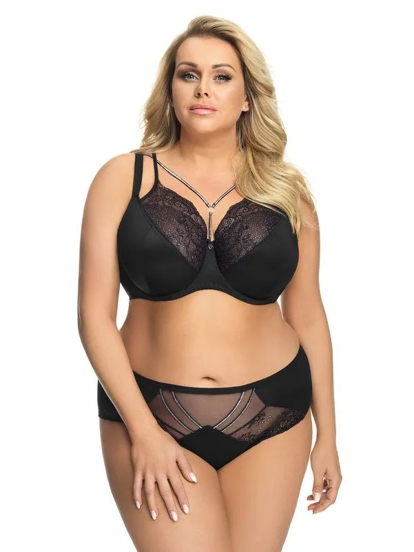 Bielizna modelująca ciało, w nieco innym niż zazwyczaj wydaniu – z błyszczącej, elastycznej tkaniny. Intrygująca i nowoczesna linia Light Control, znanej marki Babell. Figi posiadają wyższy krój, piękne, koronkowe wstawki z przodu oraz odpowiednie cięcia na tkaninie, które pozwalają wyszczuplić i wygładzić strefę brzucha oraz talii. W kroku bawełniana wkładka.