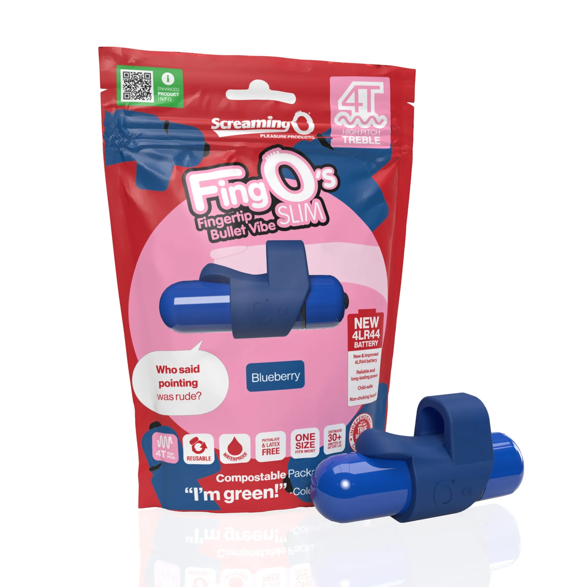 The Screaming O – Mini Wibrator Kulkowy Z Języczkiem 4T Fingo SlimGrape Umieść przyjemność na wyciągnięcie ręki dzięki 4T FingO Slim, eleganckiemu dotykowi palców zasilanemu przez nowy 4T Bullet! Wyposażony w unikalny 6-funkcyjny silnik łaskoczący i drażniący, 4T FingO Slim oferuje intensywne wibracje o wysokiej częstotliwości i zamienia Twój palec w Twoją nową ulubioną zabawkę erotyczną – i jest także w 100% wodoodporny!