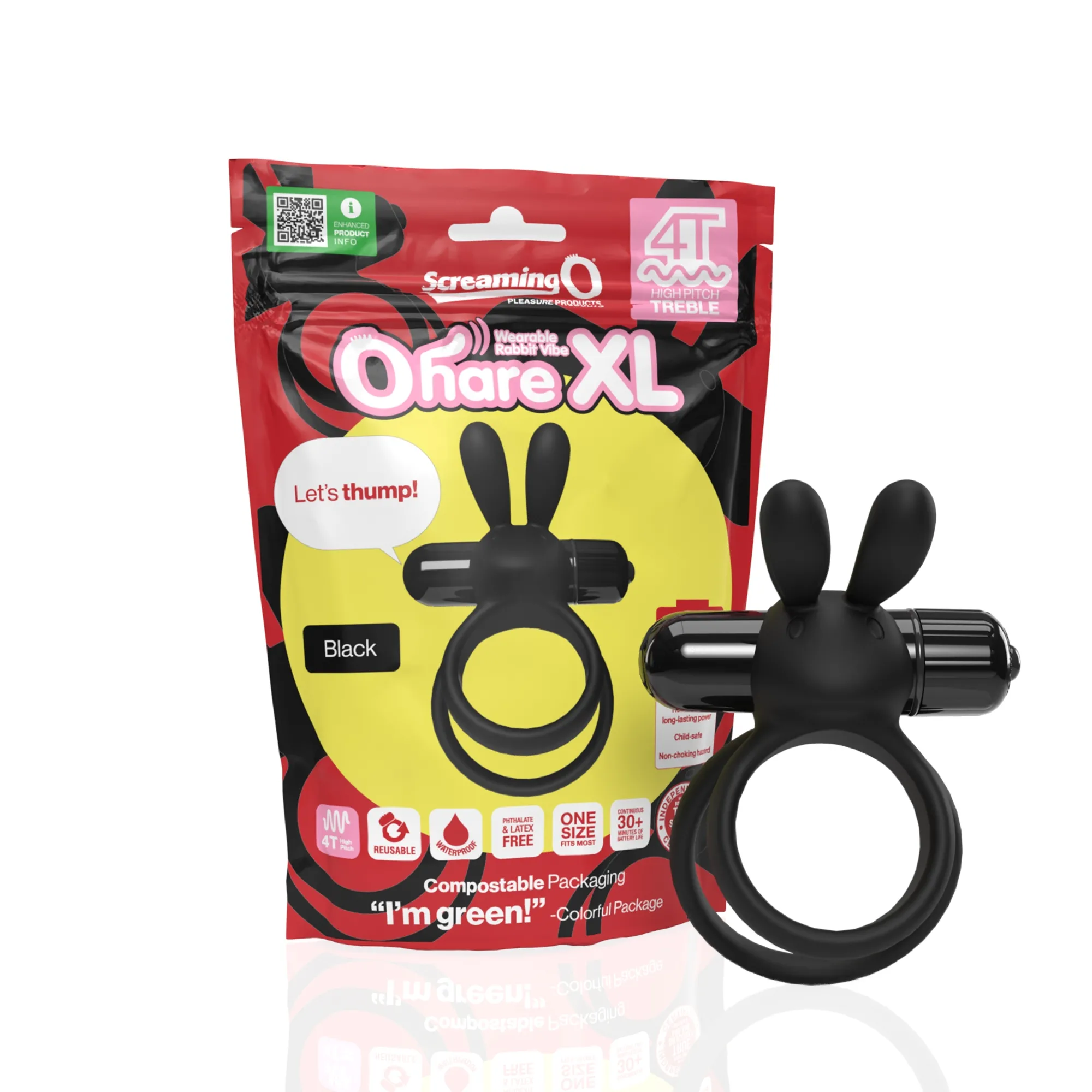 The Screaming O - Wibrujący Pierścień Na Penisa Króliczek Podwójny 4T Ohare XLBlack
